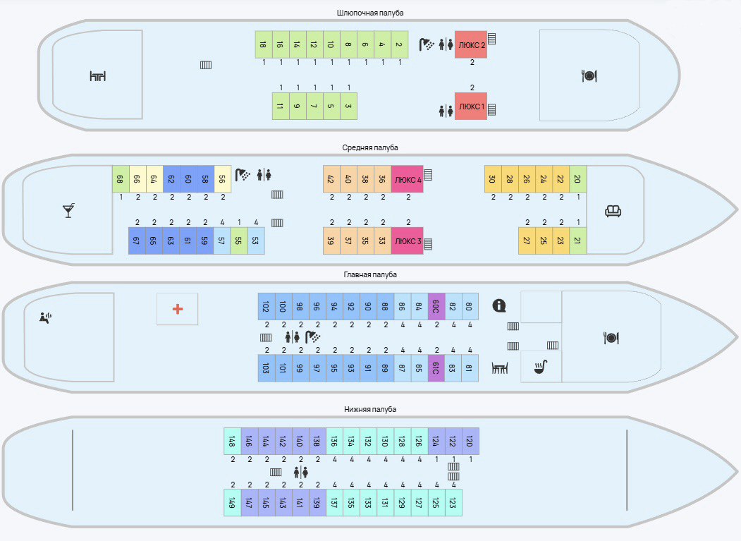 Описание и фото кают теплохода «А.Фадеев»