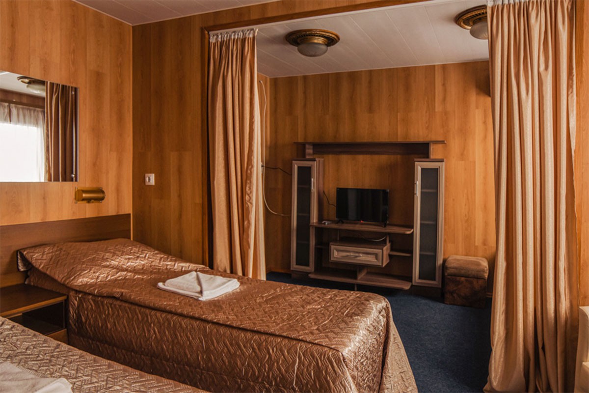 Приглашаем в речной круиз на комфортабельном теплоходе-пансионате «Александр Невский». К услугам туристов каюты со всеми удобствами (душ, туалет, раковина) и каюты с частичными удобствами (раковина). Все каюты прошли модернизацию, во время которой были сохранены ретро-стиль и цветовая гамма, в оформлении использовано дерево и начищенная латунь. Во время модернизации полностью заменены мебель, обшивка стен и сантехника. Во всех каютах предусмотрена судовая радиотрансляция.