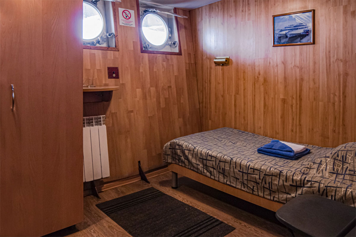 К каютам категории А1 относятся следующие номера кают: 337. Одноместная каюта со всеми удобствами, расположенная на средней палубе. В каюте: односпальная кровать, душ, туалет, раковина, кондиционер, шкаф для одежды, радио, розетка 220 V.